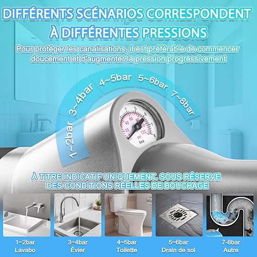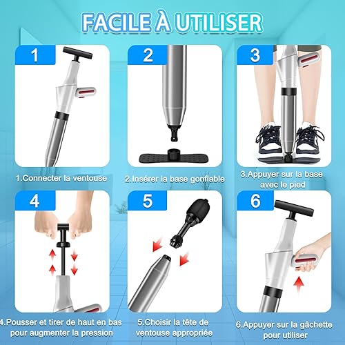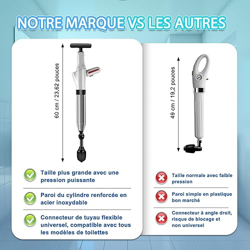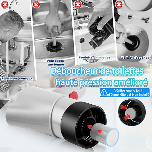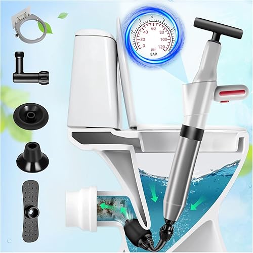 Utoimian Déboucheur WC Haute Pression avec Manomètren, Ventouse Deboucheur à 4 Ventousesl, Déboucheur de Toilette à Air Comprimé pour Lavabo, Toilettes, Salle de Bain, Douche et Cuisine