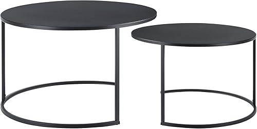 Lot de 2 Tables Basses Rondes Gigognes Capacité de Charge 20 kg Tables de Salon Robustes en Fer de Tailles Différentes Noir