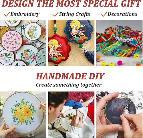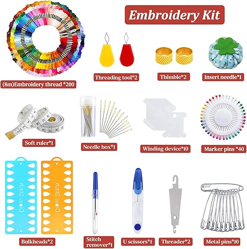 IGUGI Fils à Broderie Kit,200 Couleurs Fil à broder+Outils Total 284 Pièces,pour Broderie Point de Croix Tricotage Bracelets Brésiliens Fil a Coudre des Outils Accessoires