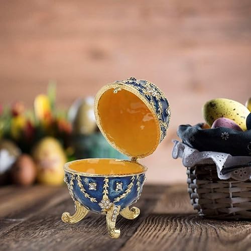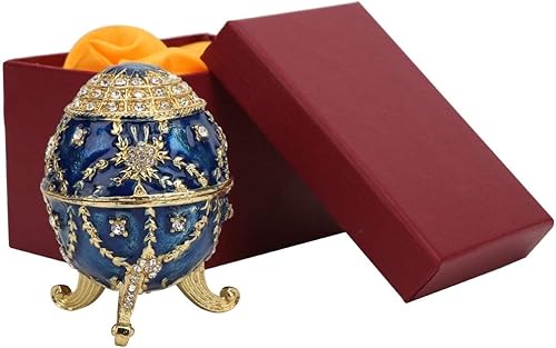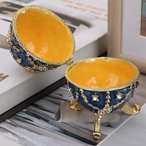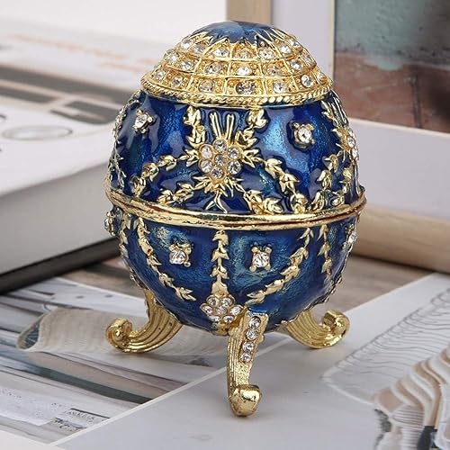 HERCHR Boîte à bijoux en forme d'oeuf de émaillé peint à la main, boîte à bijoux à charnière décorative pour porte-bague à bijoux