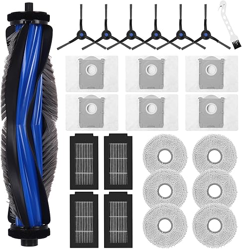 24 Kit Pièces d'rechange Compatible pour ECOVACS DEEBOT T50 Max / T50 Pro / T50 Omni / T50 Pro Omni / T50 Max Pro,4 Filtres,6 Brosses latérales,6 Sacs à Poussière,6 Chiffons,1 Brosse Principale