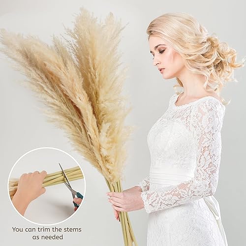 Lot de 10 Pampa XXL – Grandes Pampas séchées Decoration en Fleurs séchées pour Style bohème, idéal pour Salon, Chambre, Salle à Manger, Mariages et hôtels