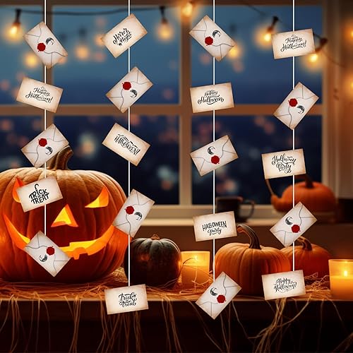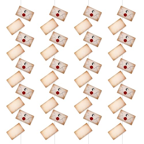 4pcs Bannières Flottantes avec Lettres d'Acceptation Magic Wizard, Bannières Enveloppantes avec 40 Cartes Enveloppantes Fournitures de Décoration de Fête Noël et d'Halloween Pré-Assemblées