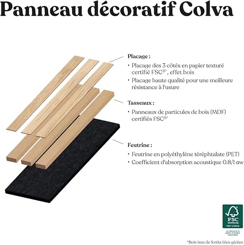 Lot de 4 Panneaux décoratif accoustique tasseaux bois Colva 120x30 cm - (Soit 120x120cm) (Noyer)