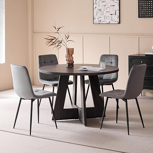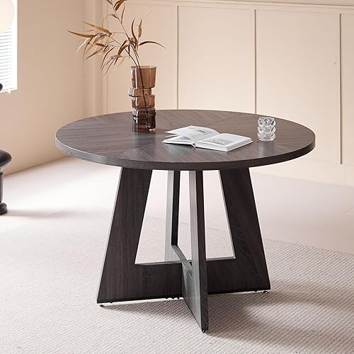 BenyLed Table de Salle à Manger Ronde (plateau en MDF) avec Pieds en Bois Massif ; Table de Cuisine Moderne pour Salle à Manger, Salon, Café, Bureau, etc., 120*120*76cm (Couleur Originale du Bois)