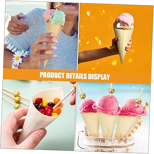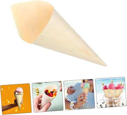 Anneome 100pièces Cornets Bois Pour Glace Récipients Jetables Bois Pour Desserts -corn Et Plus Pratiques Et Uniques Pour Fêtes Et Événements