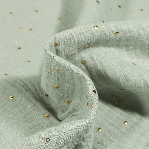 Craftine Tissu Double Gaze Baya Pois dorés sur Fond Vert d'eau - par 50 cm