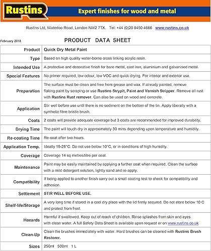 Rustins - peinture métal satiné - Séchage rapide - Utilisation intérieure et extérieure - Blanc - 500ml