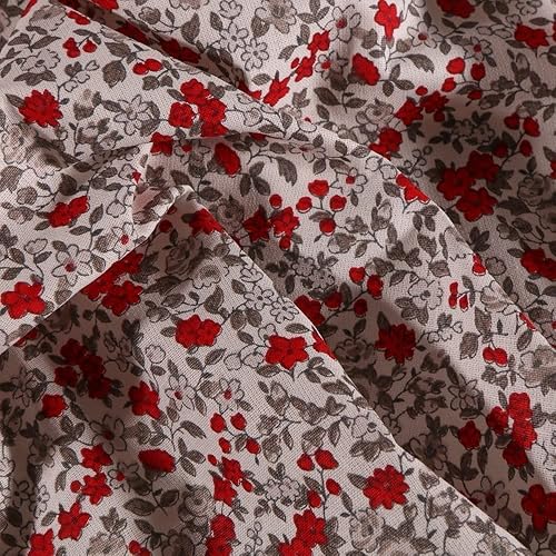 Tissu Coton imprimé Arty Petites Fleurs Grises et Rouges sur Fond Blanc - par 50 cm