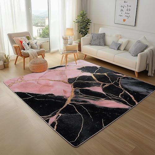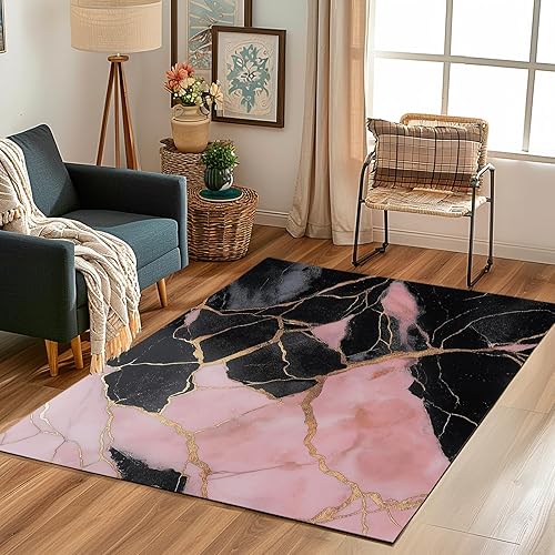 Yidbhsse Tapis Gradient Décoration Chambre, Tapis Peinture Fluide Interieur À Poils Courts, Tapis De Sol Marbre Art Lavable, Antidérapant pour Cuisine Salon 160x220 cm