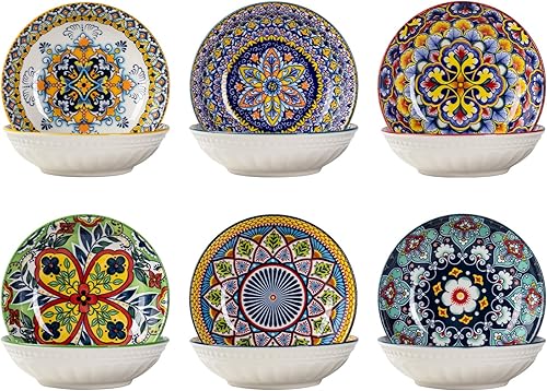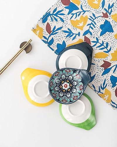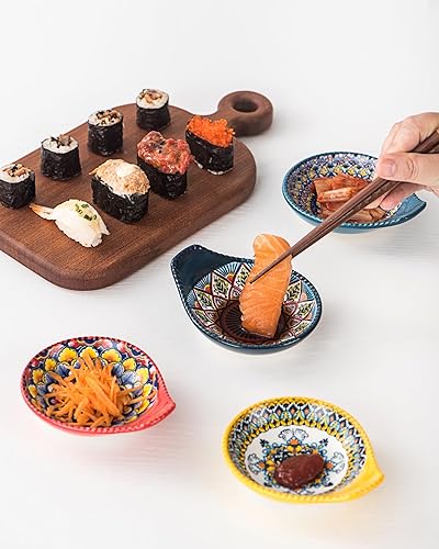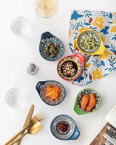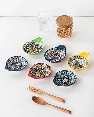 HENXFEN LEAD Bols à encas Céramique, 14cm Set de bols à tapas Bols à trempette Porcelaine pour sauce, soja, sushi, snack. Coloré, pack de 6 - Style bohème
