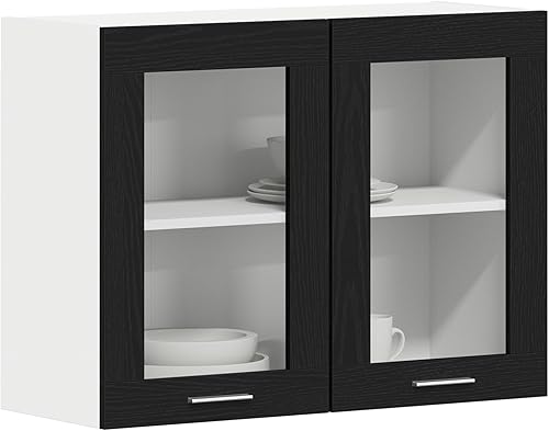 vidaXL Cabinet en Verre Noir en chêne 80x31x60 cm fabriqué en Bois d'ingénierie
