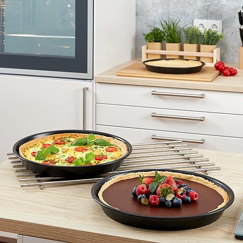 Grizzly Lot de 3 moules à tarte avec revêtement antiadhésif Diamètre 30 cm Moules ronds pour de délicieux gâteaux, fonds de tartes, quiches et tourtes