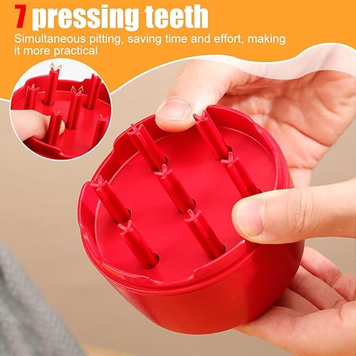 Dénoyauteurs de Cerise et Olives, Multi Dénoyauteur pour Cerises Retrait de Graines à Pression Facile avec 7 Dénoyauteurs Appareil de Cuisine pour La Séparation Propre de La Chair et du Noyau.