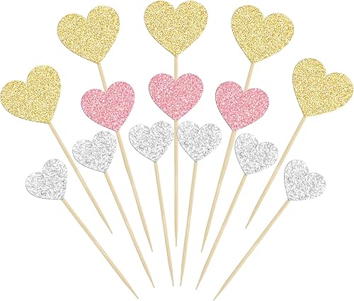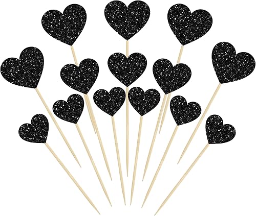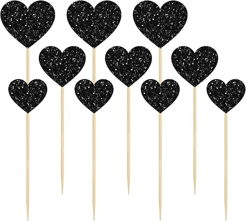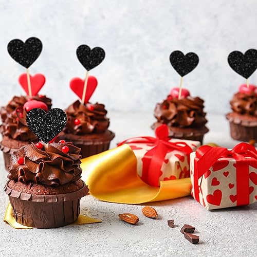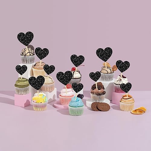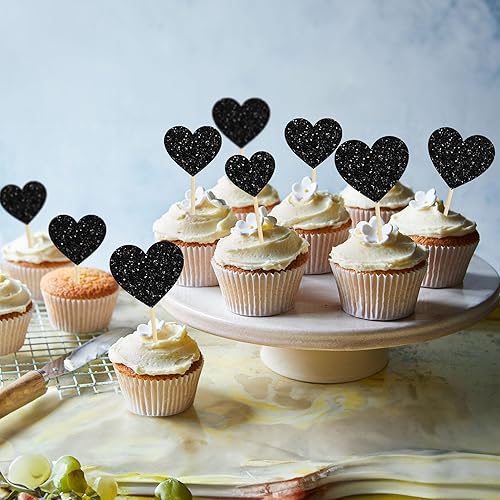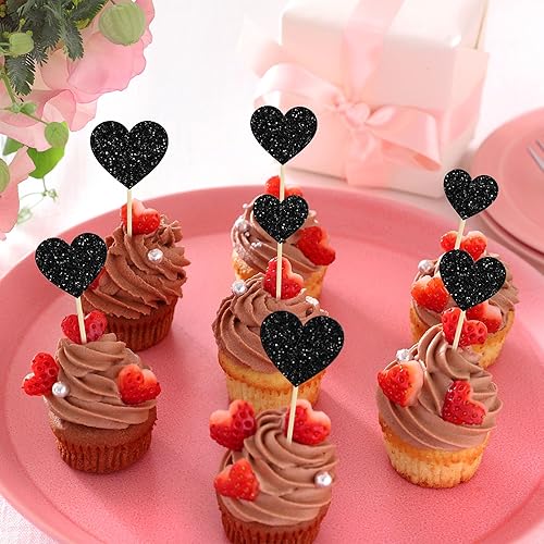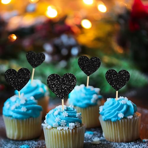 Gyufise Lot de 30 décorations de cupcakes en forme de cœur bleu foncé à paillettes pour la Saint-Valentin, mariage, fiançailles, fête prénuptiale, fête d'anniversaire
