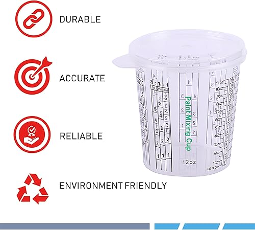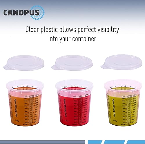 CANOPUS Tasses à Mesurer en Plastique avec Couvercles, 360ml Pot de Melangeur Resine Epoxy, Coupelle de Melange Epoxy, Tasse graduee, Doseur Peinture, Pot Melange Peinture, (12 Tasses + 3 Couvercles)