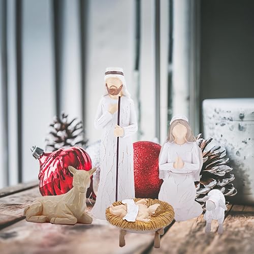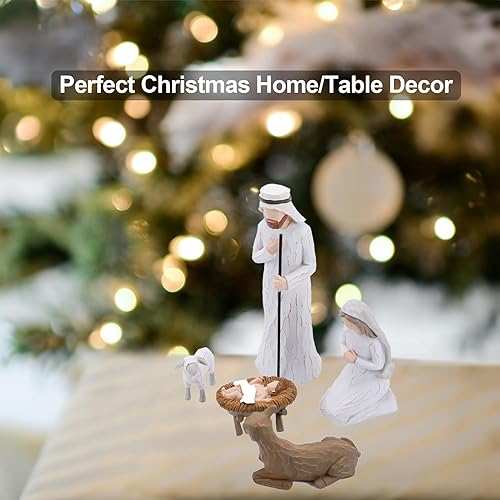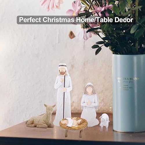 CHUANGLI Ensemble de crèche de Noël en résine avec figurines, crèche de Noël traditionnelle pour décoration