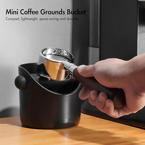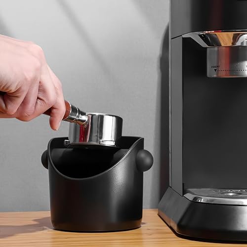 ZONJIE Récipient à café - Réservoir à marc de café de 0,45 l avec barre de frappe amovible et base antidérapante, réservoir à expresso absorbant les chocs pour porte-filtre (noir)