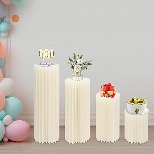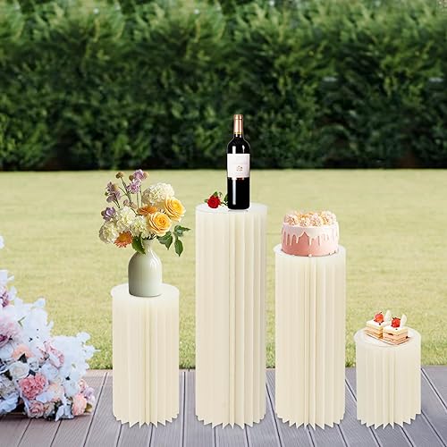 Lot de 4 vases en carton - Colonnes de fleurs pliables - 40 cm, 60 cm, 80 cm, 100 cm - Avec plaques en PVC - Pour mariage, fête