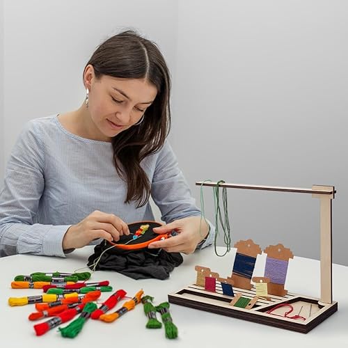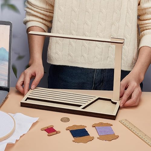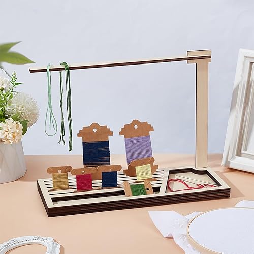 PH PandaHall Porte Bobines en Bois pour Fil à Broder Organisateur de Fil à Broder en Bois à 5 fente Support de Bobine pour L'Artisanat le Point de Croix la Broderie la Couture 29x11x21.6cm