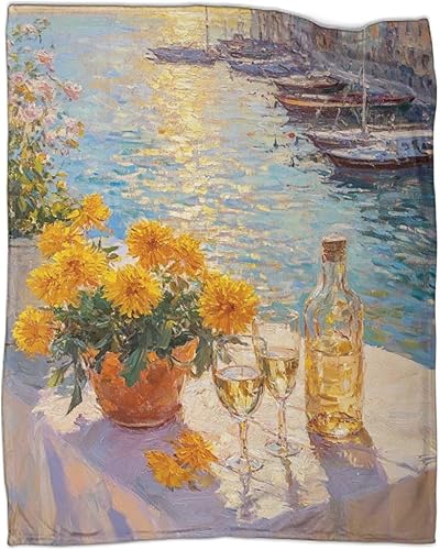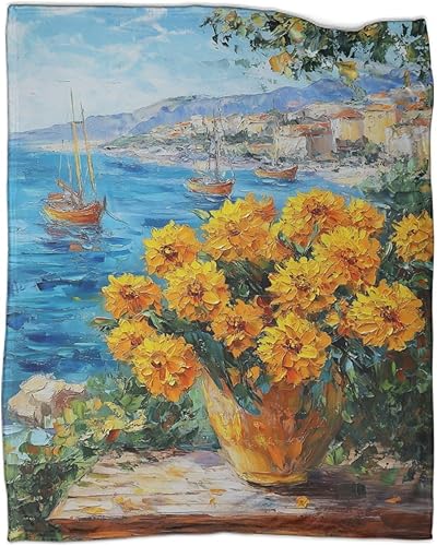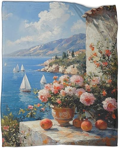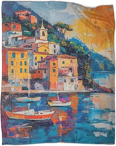 SorEci Imprimée 3D Positano Couvertures en Flanelle Ultra Douce Couverture À Motif Paysage pour Adolescents Et Adultes 80x90inch(200x230cm)