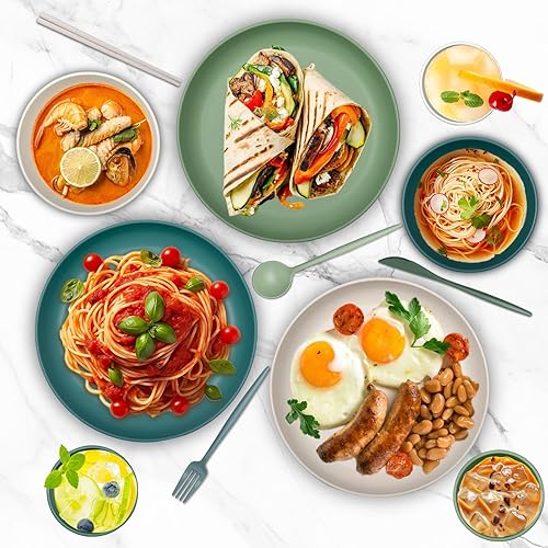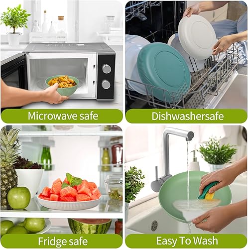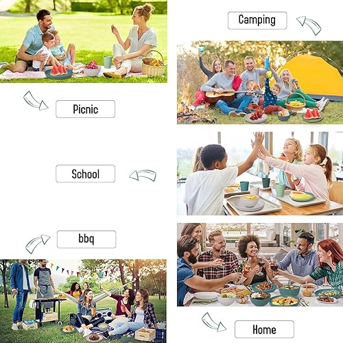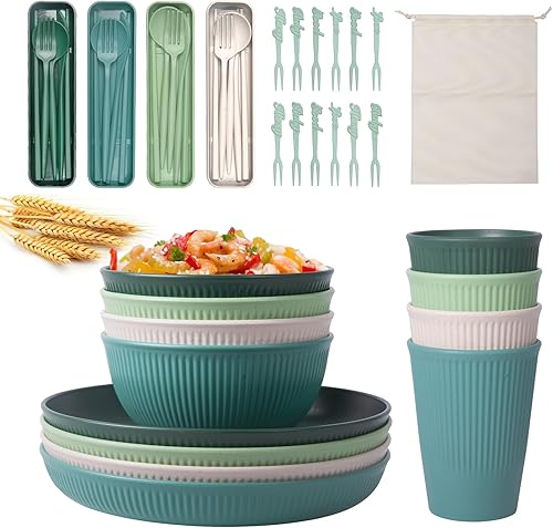RHM Lot de 45 couverts de camping pour 4 personnes - Assiettes et bols de camping incassables - Légers - Vert - Pour camping, pique-nique, camping-car, mariage, HK-XMJG03