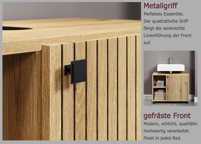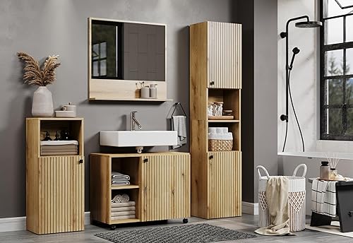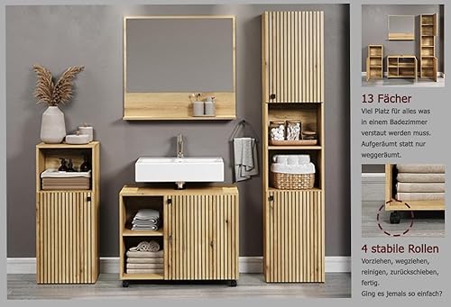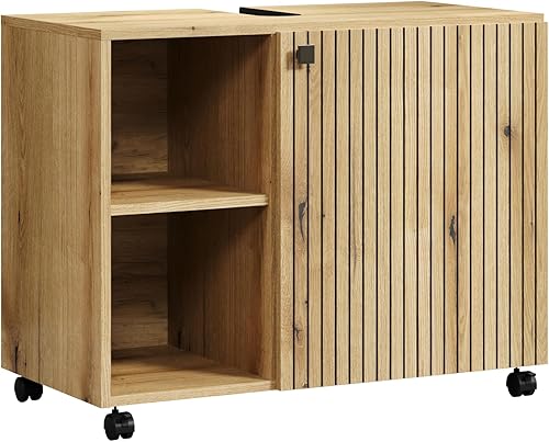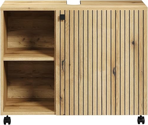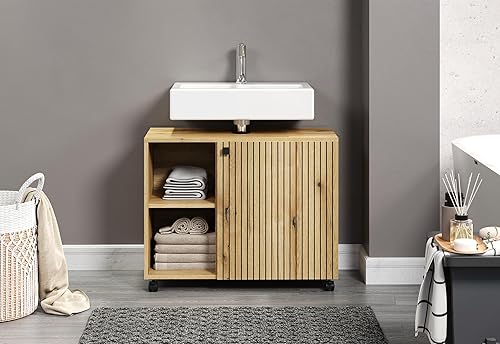 trendteam Smart Living - Meuble sous-Vasque à roulettes - Salle de Bain - PureBliss - Dimensions de Montage (LxHxP) 80 x 64 x 42 cm - Couleur chêne Evoke avec rainures Noires - 233730142