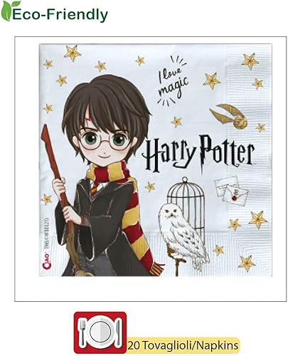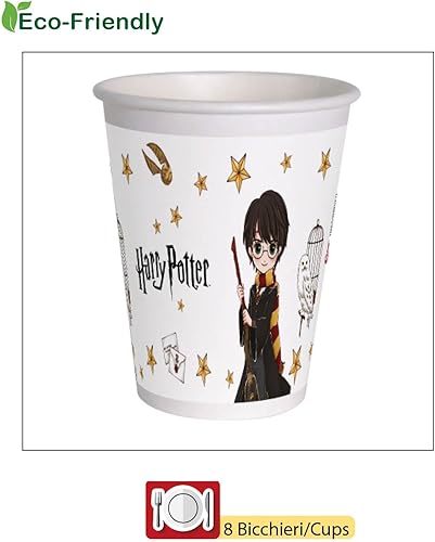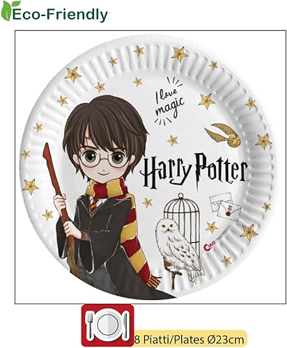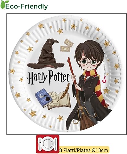 Ciao-Kit Table Fête Party Harry Potter 8 personnes (44 pcs: assiettes, gobelets, serviettes) en papier compostable Vaisselle, AZ019, Multicolor