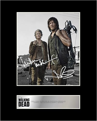 Photo dédicacée encadrée de Melissa McBride, Carol Peletier et Norman Reedus, Daryl Dixon The Walking Dead
