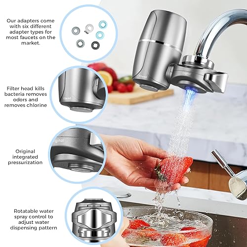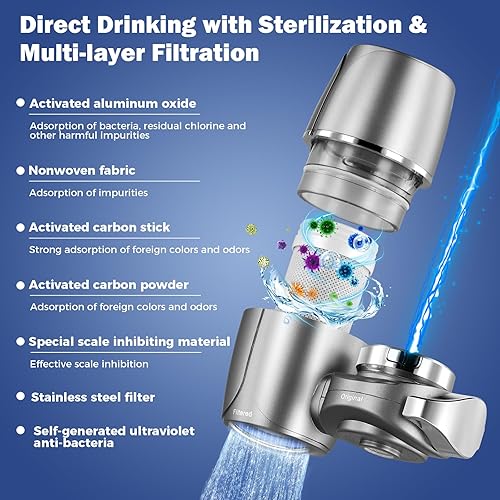 Filtre eau Robinet, Filtre à Eau pour L'eau Potable et L'eau du Robinet, Système de Filtration, Purificateur de l'eau de Longue Durée pour Cuisne, Réduit Chlore, Goût et Odeur(A)