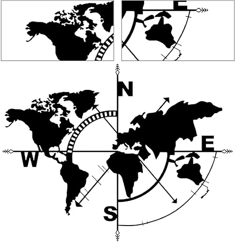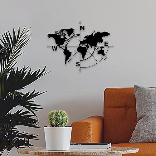 Décoration Murale en Métal - Carte du Monde | Boussole - Style Industriel Moderne pour Maison, École, Salle de Classe, Salon