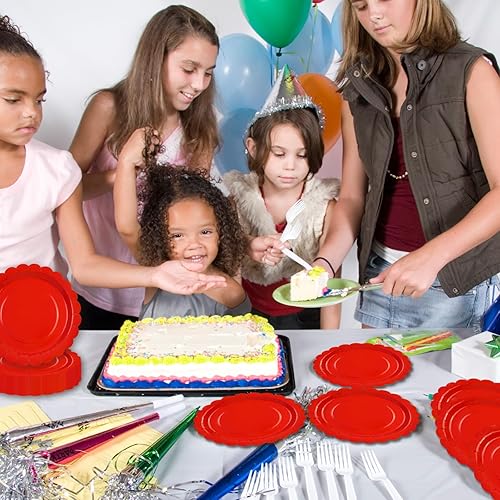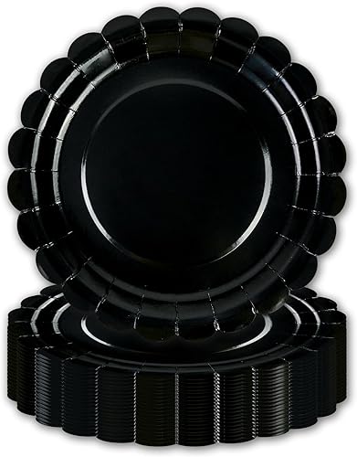 HFBOBP Lot de 50 assiettes en carton festonnées noires pour dîner et dessert, fournitures de fête jetables pour remise de diplôme, vacances, mariage, fête d'anniversaire, fête prénatale