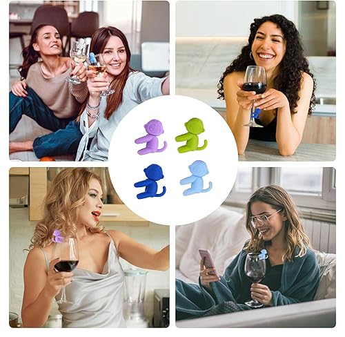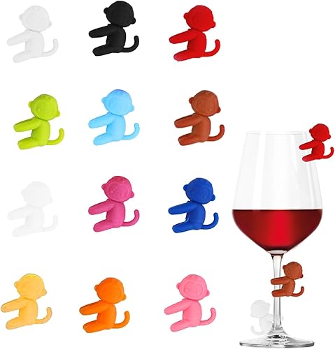 12 PCS Marque Verre à vin, Singe Marqueurs de Verre à Vin en Silicone Marque, Identifiants pour Verres de Réception, Accessoires pour le Vin, Idéaux pour la vie Quotidienne et les Fêtes (Multicolore)