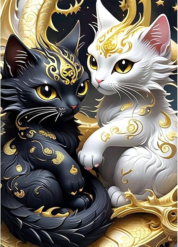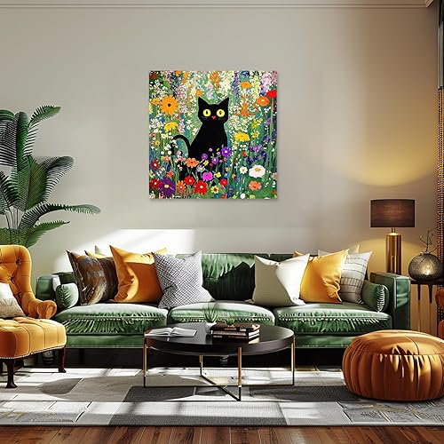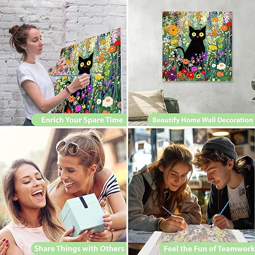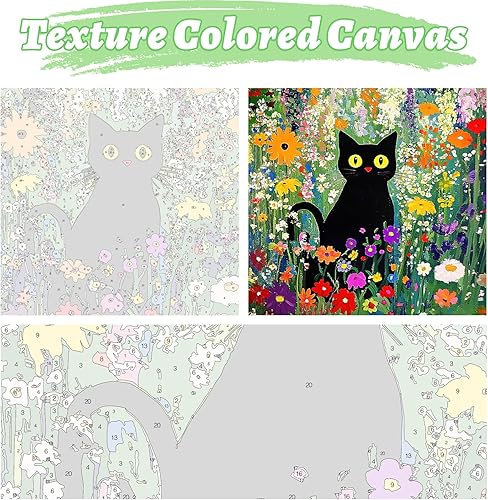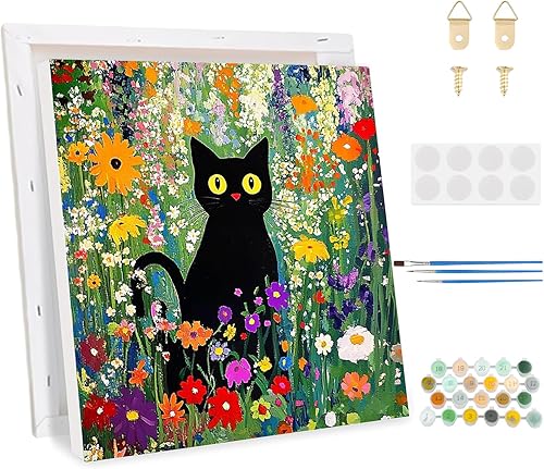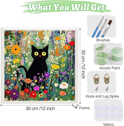 KEYIFA Peinture par Numéros pour Adulte, Kits de Peinture au Numéro avec Peinture Acrylique et Pinceaux, Chat noir DIY Creatif Toile Peinture à l'huile, Décoration de Maison 30x30cm