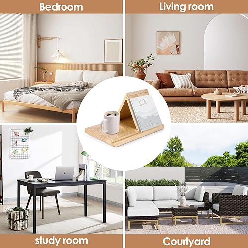 BTBHIHO Étagère à livres de lecture avec porte-gobelet, petite étagère à livres de lecture, triangulaire courte en bois de haute qualité, convient comme cadeau d'anniversaire pour chambre à coucher