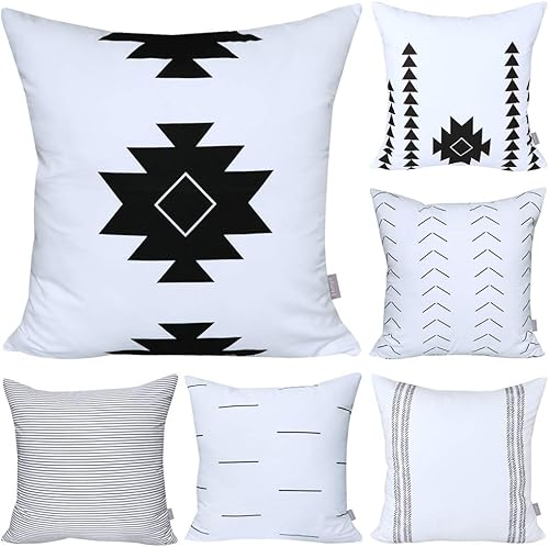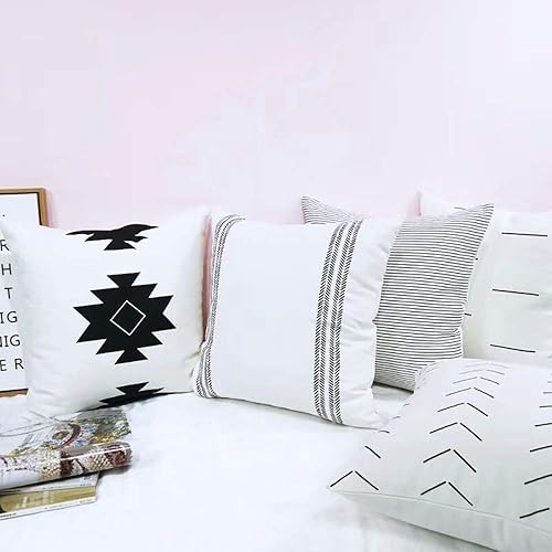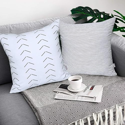 Thmyo Taie d'oreiller en Coton, taie d'oreiller décoratif Confortable, taie d'oreiller carrée (Housse Seulement, sans Insertion) (18x18 Pouces / 45x45cm, Paquet de 6 Rayures géométriques)