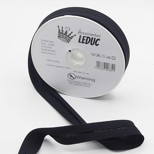Leduc 20 mètres Biais Bio Coton - 10 Coloris - Pour couture Double plis 8+20+8 mm Organic Ecologique - Issus d'une culture Biologique - Qualité Italienne 15069 Black