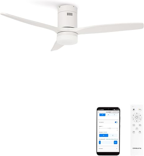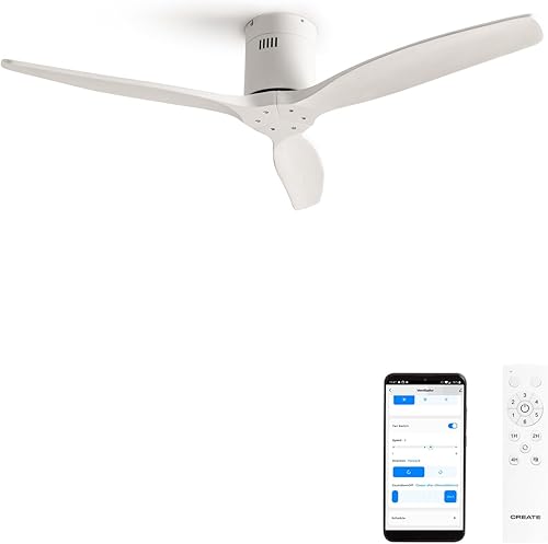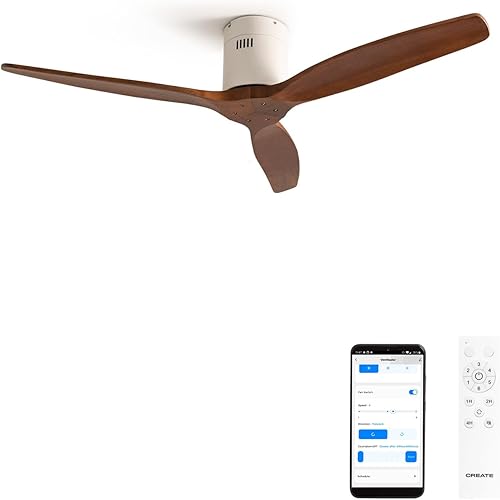 CREATE / WINDCALM NATURAL WOOD M/Ventilateur de plafond avec lumière blanc pales bois clair avec WiFi et télécommande / 40W, Minuterie, Ø132 cm, 3 températures de lumière, fonction été-hiver