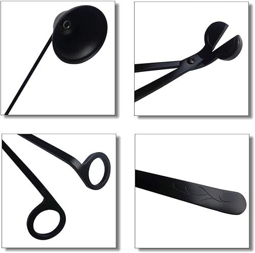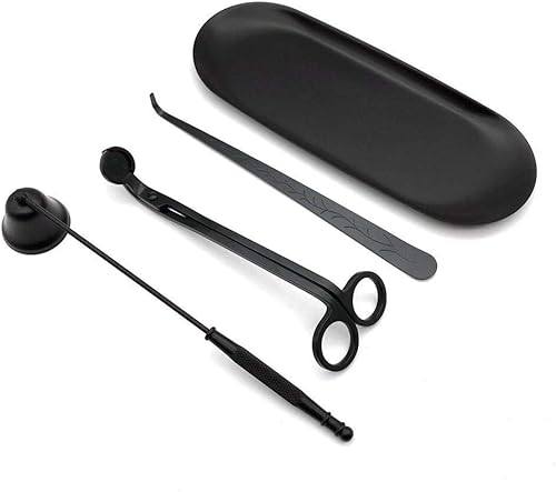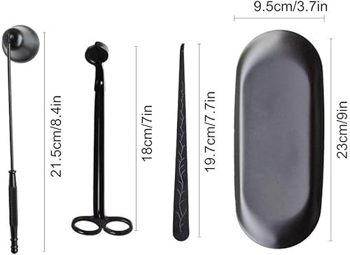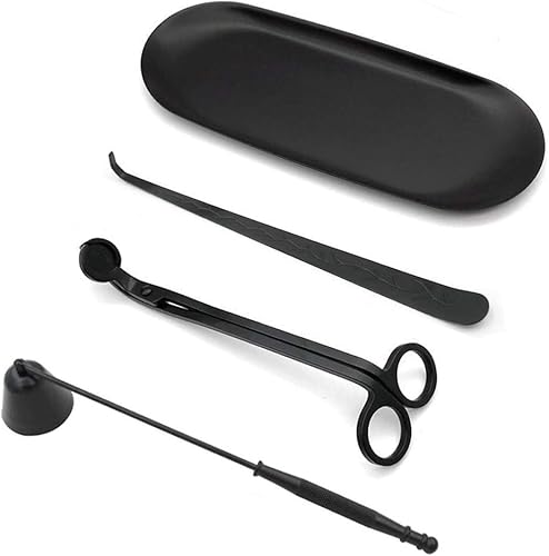 ABMRO Kit d'outils 4 en 1 en acier inoxydable pour bougeoir - Coupe-mèche de bougie - Cuillère à mèche de bougie - Éteignoir et support d'assiette