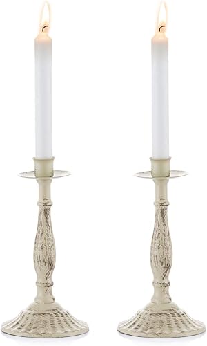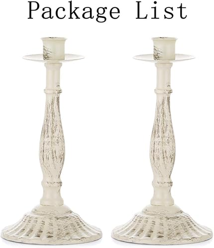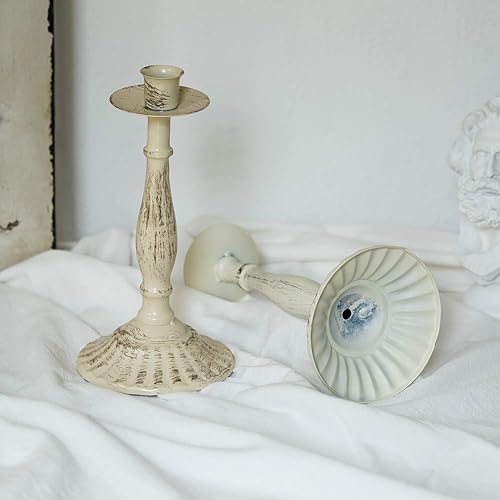Sziqiqi Bougeoirs Coniques en Métal Vintage pour Table Décorative, Support de Chandelier Minable en Fer Forgé pour Bougies Coniques, Bougeoir Antique en Ivoire pour Décor de Fête de Mariage, Ivoire