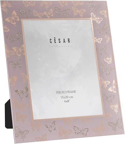 DRW Cadre photo en verre avec papillons pour photographie de 15 x 20 cm, rose et doré, ext. 23 x 28 cm, INT. 15 x 20 cm