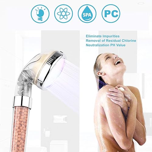 Pommeau Douche,7 Couleurs LED Changement,Douchette de Douche LED Salle de Bain Spa - haute pression economie deau- Haute Filtration avec Trois Niveaux Ionique Négative Prévention