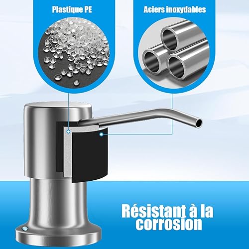 SkyJoy®Distributeur Savon encastrable.Distributeur de Savon de Cuisine en Acier Inoxydable, Distributeur de Savon pour évier. Distributeur de Savon encastré avec écrou.Noir