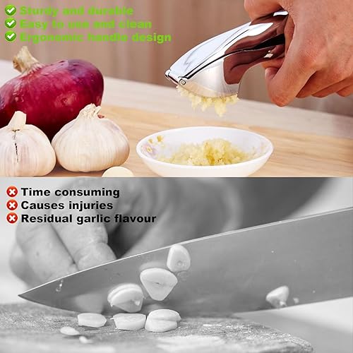 Presse Ail Manuel, Ecrase Ail Manuel, Presse-ail Professionnel, Garlic Press, Solide et Durable, Facile à Utiliser et à Nettoyer, Alliage de Zinc, pour écraser L'ail et le Gingembre