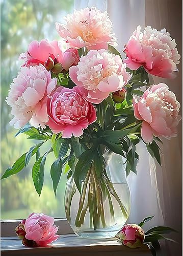 QENSPE Diamond Painting Fleur, Kit Peinture Diamant Adulte, Pivoine Diamant Painting Broderie Diamant Kit Complet, Bricolage Diamonds Art Point de Croix Maison Murale Decor 30x40cm