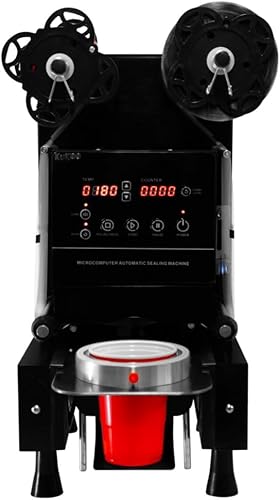 Machine à sceller les tasses électrique 500 W entièrement automatique sous vide Panneau LCD en acier commercial Bubble Milk Tea Coffee Smoothies Papier plastique 90 mm 95 mm de diamètre 500-650 tasses