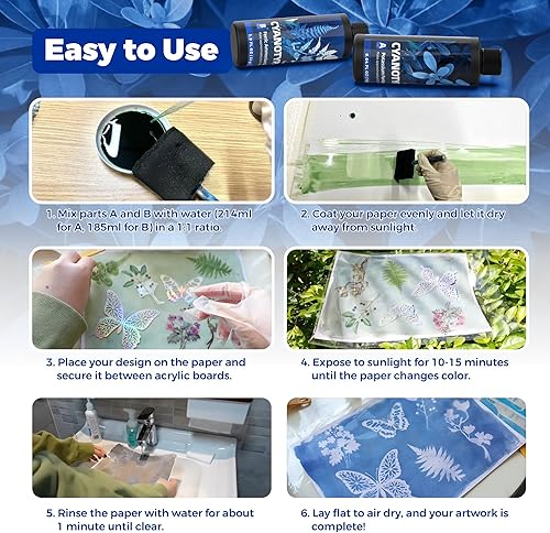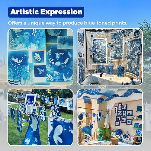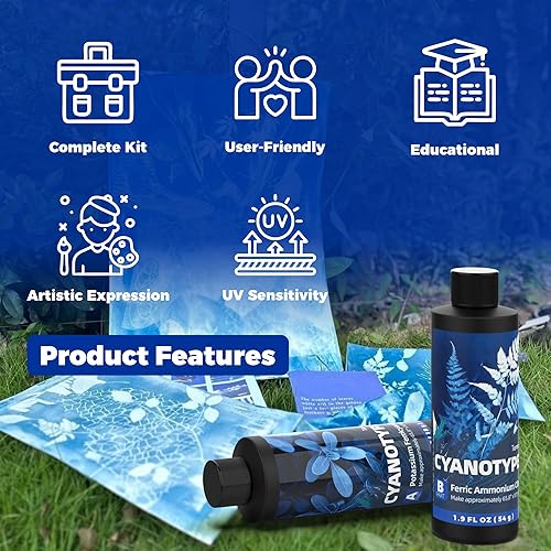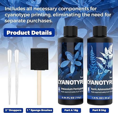 Kit complet de cyanotype, sensibilisateur cyanotype pour impression solaire, kit de produits chimiques cyanotype pour projets de teinture cyanotype sur tissu et papier, kit de sensibilisation