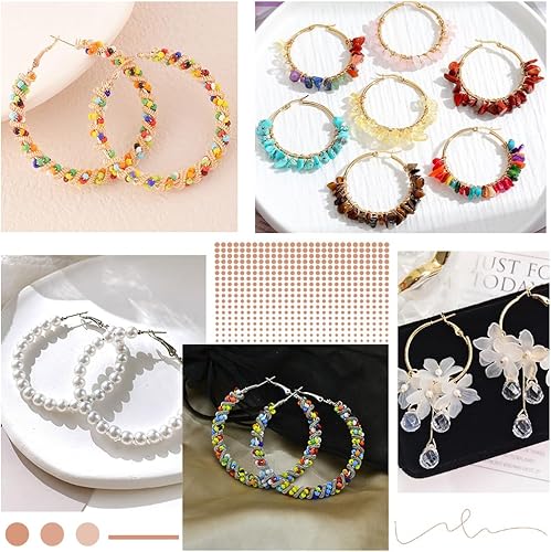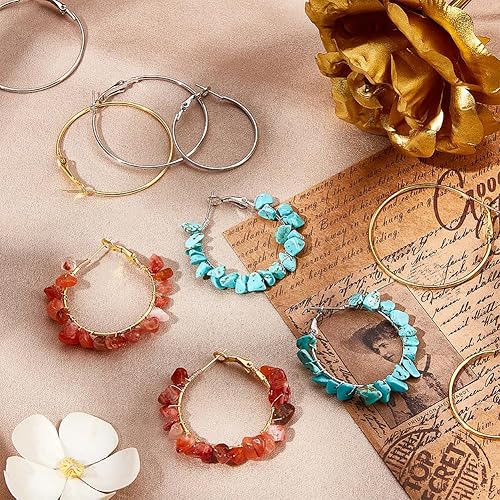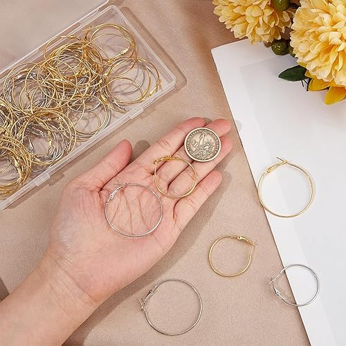 SOFPLATE 1 boîte de 80 créoles Rondes en Perles de 4 styles Petits Créoles en Fer Hypoallergénique Boucles D'Oreilles Pendantes en Or Boucles D'Oreilles Ouvertes en Argent pour la Fabrication de Bijou