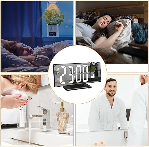 HMLTD Réveil numérique à Projection,Projection de Plafond d'horloge Polyvalente avec écran LED de 8 Pouces - Réveil à Projection Intelligent, projecteur d'horloge à Longue durée de Vie de la Batterie