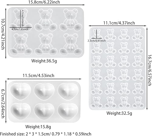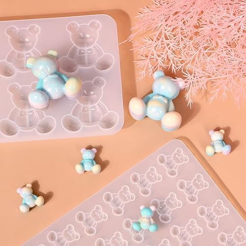DeryArcle 3 Pièces Moule Ourson 3D Resine Epoxy Moule Coeur Silicone Moulle Bijoux Porte Clé Moulage de Resine de Coulée pour Boucles D'oreilles, Collier Fabrication